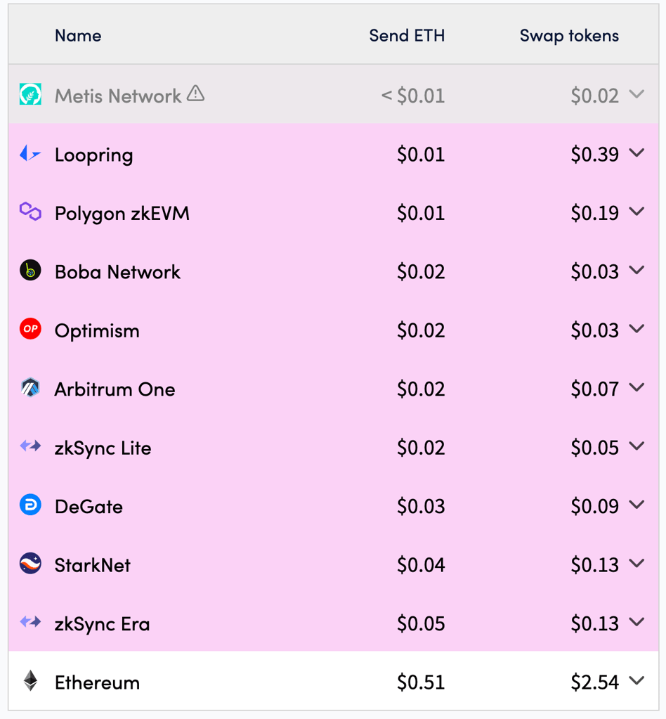 zkRollupがOptimistic Rollupの上位互換のように聞こえますが、zkRollupは実装が難しくEVMと同等の実行環境をもつものがローンチされたのも2023年に入ってからで、Optimistic Rollupに比べて手数料が高くパフォーマンスも落ちるなど課題は残っています。使いやすさという点ではOptimistic Rollupが優れているようで、zkEVMが登場してからも利用者や出来高がそちらに大きく流れ込むには至っていないです。